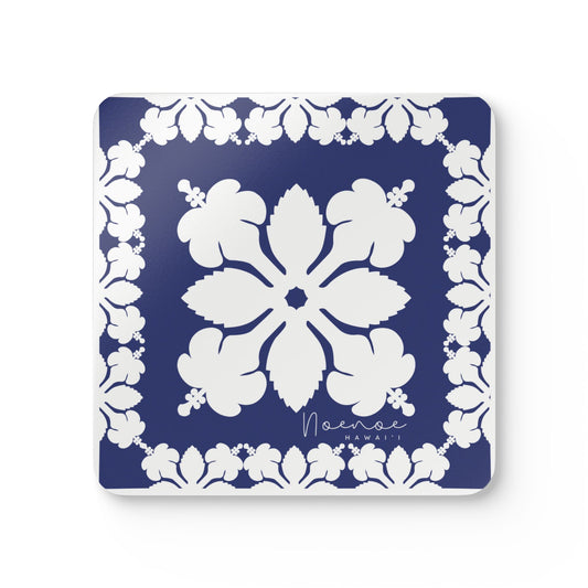 Corkwood Coaster Set, Hawaiian Quilt Hibiscus- Dark Blue